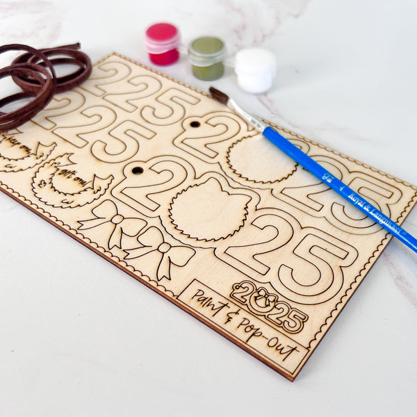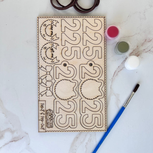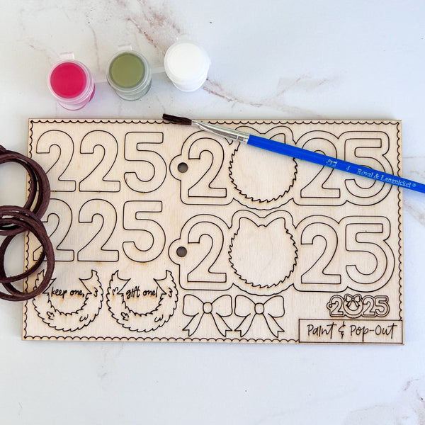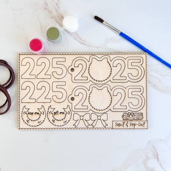 - 2 laser-cut wooden 2025 ornaments (ready to paint)